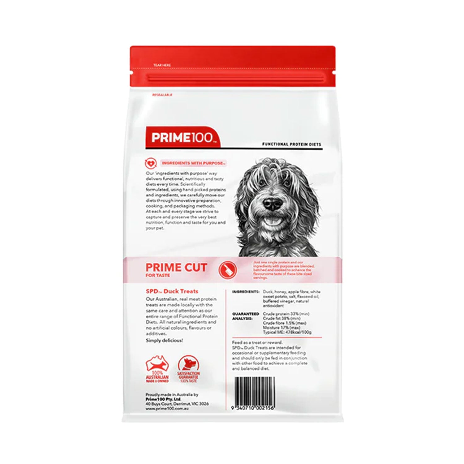 Our Australian, real meat protein SPD™ Prime Cut Duck Treats are made locally with the same care and attention as our entire range of Functional Protein Diets. All natural ingredients and no artificial colours, flavours or additives. Feed as a treat or reward - Simply delicious!