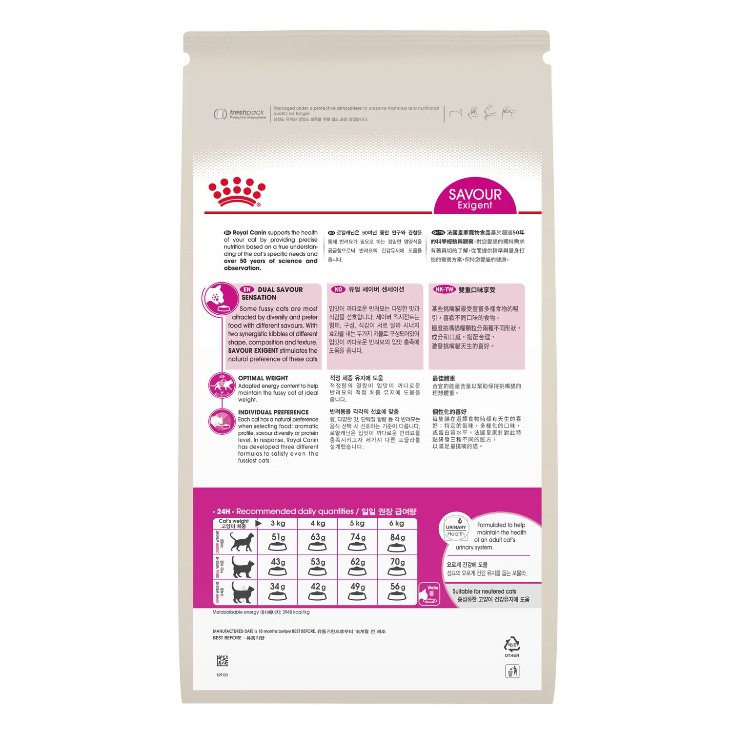 Dual savour sensation - Some fussy cats are most attracted by diversity and prefer food with different savours. With two synergistic kibbles of different shape, composition and texture, Savour Exigent stimulates the natural preference of these cats.