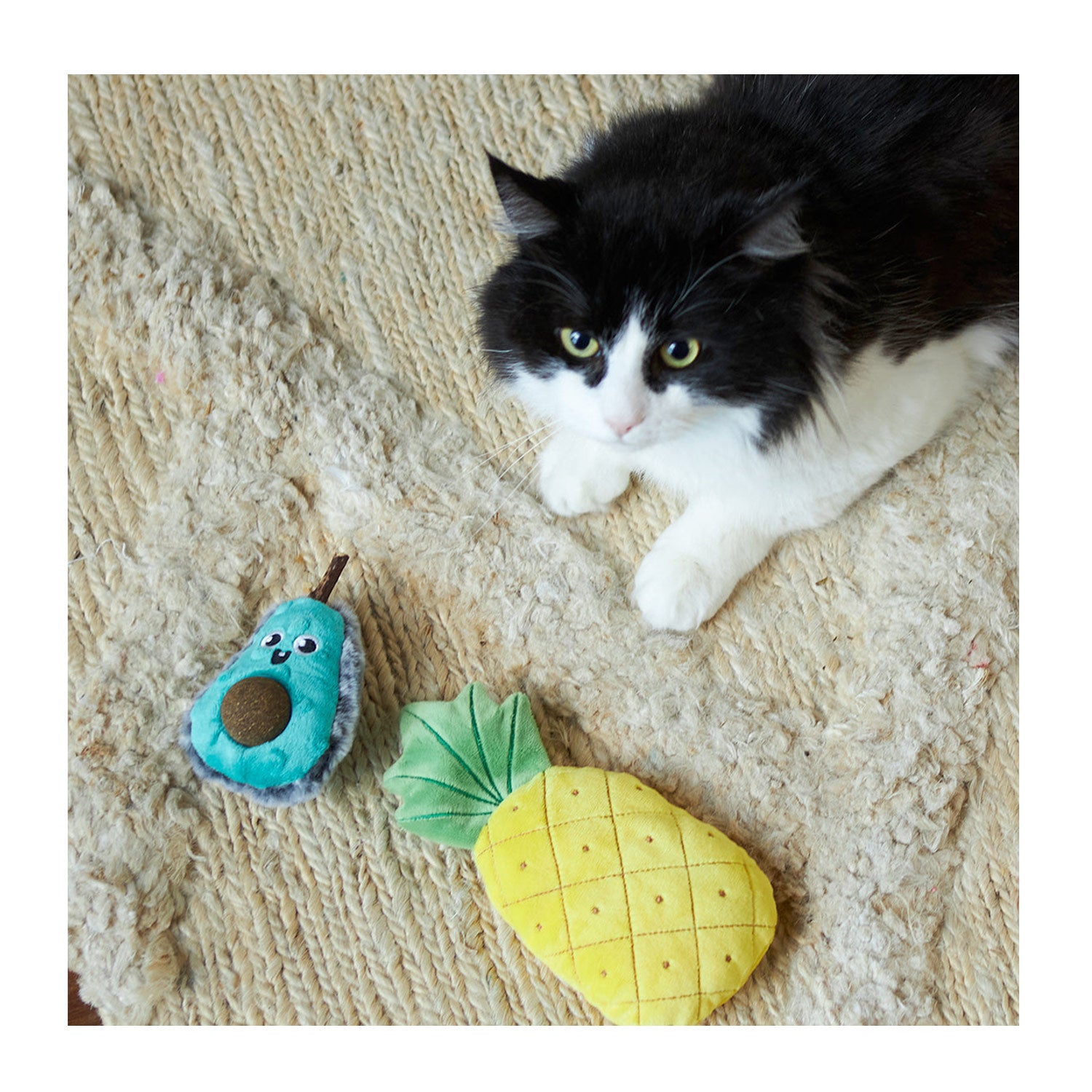 It's time to get fruity! This purr-ty plush pineapple is made with a special crinkle material that feels and sounds irresistible to curious kitties like me… it’s also got natural catnip inside that can help even the most anxious pawsonalities bliss out on feel-good vibes.