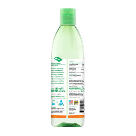 Cleaning your pet’s teeth is about more than just getting their pearly whites to sparkle — it’s an important step in their overall health and wellness. With TropiClean Fresh Breath Dental Health Supports Skin Health, dogs can benefit from daily plaque and tartar defense. This special formula contains added omegas-3 and -6 fatty acids to help support healthy skin. Easy-to-use Dental Health Solution gives your dog clean teeth and fresh breath- no brushing required!