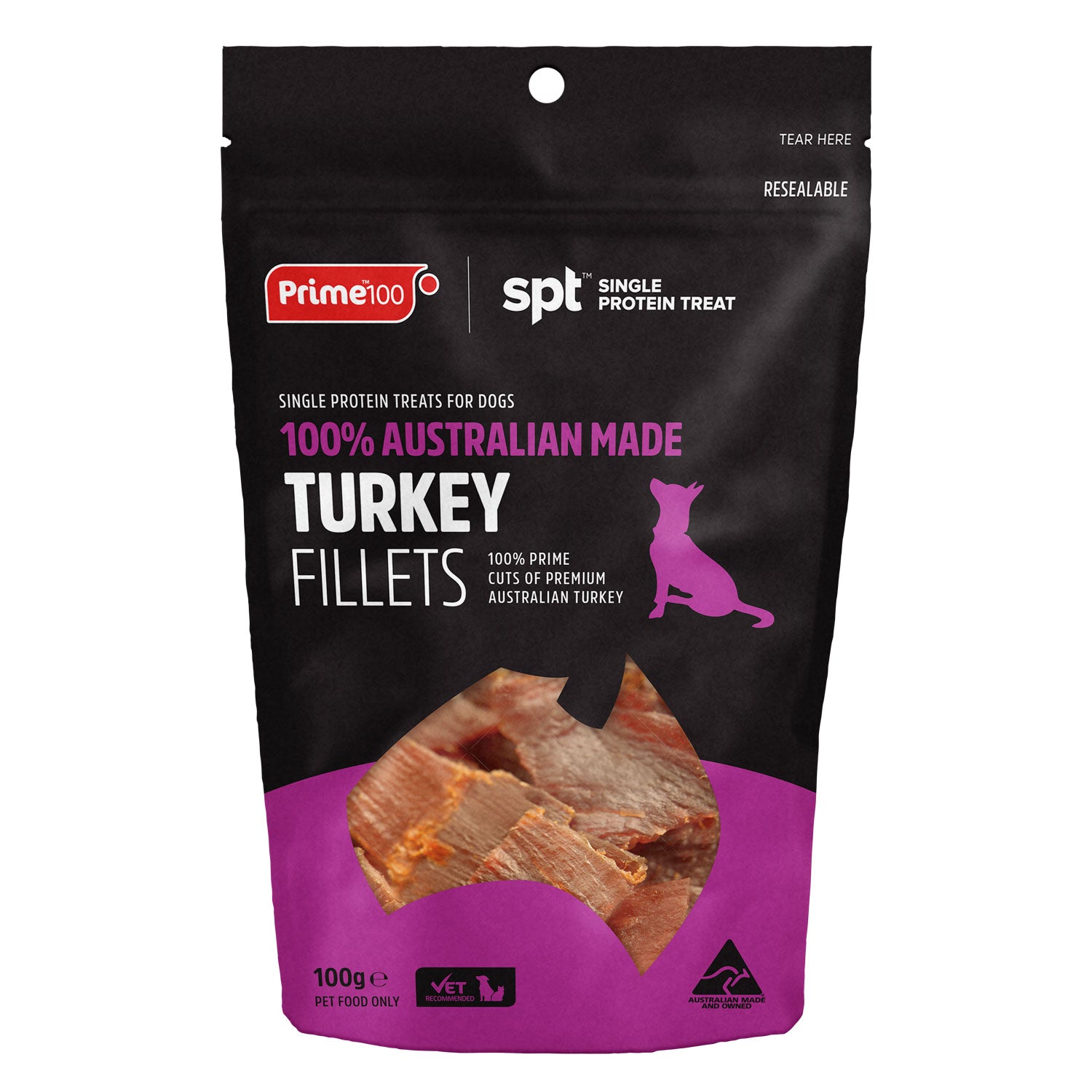 Prime100 SPT™ (single protein treat) Turkey Fillets are an ideal training aid or treat, made from premium 100% Australian Turkey. These treats can also be fed in conjunction with the SPD™ (single protein diet) Turkey & Flaxseed roll as part of an elimination diet or food trial.