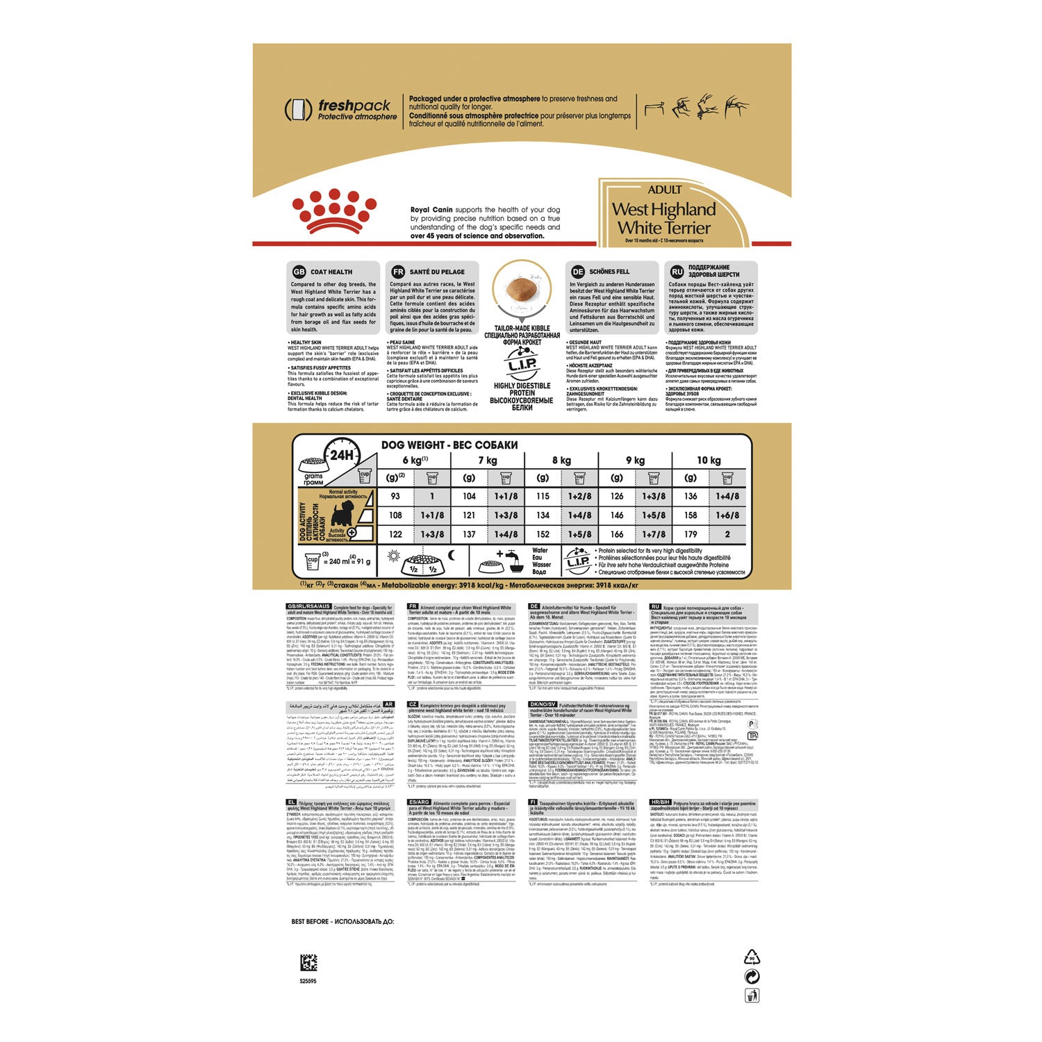 Healthy skin - West Highland White Terrier Adult helps support the skin’s "barrier" role (exclusive complex) and maintain skin health (EPA & DHA).