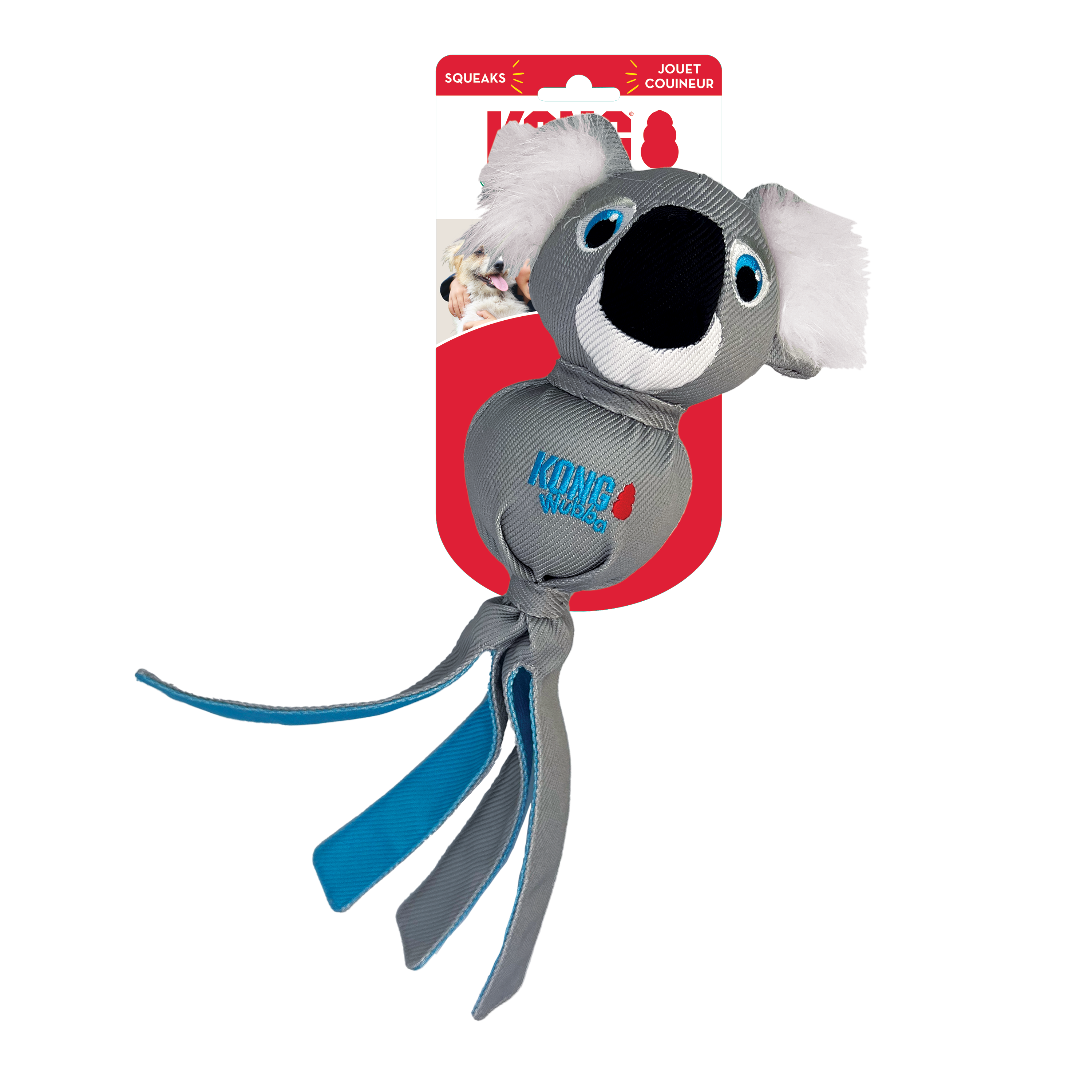 The Kong Wubba Zoo Koala Dog Toy combines movement, sound, and softness—perfect for dogs who love action and snuggles alike.