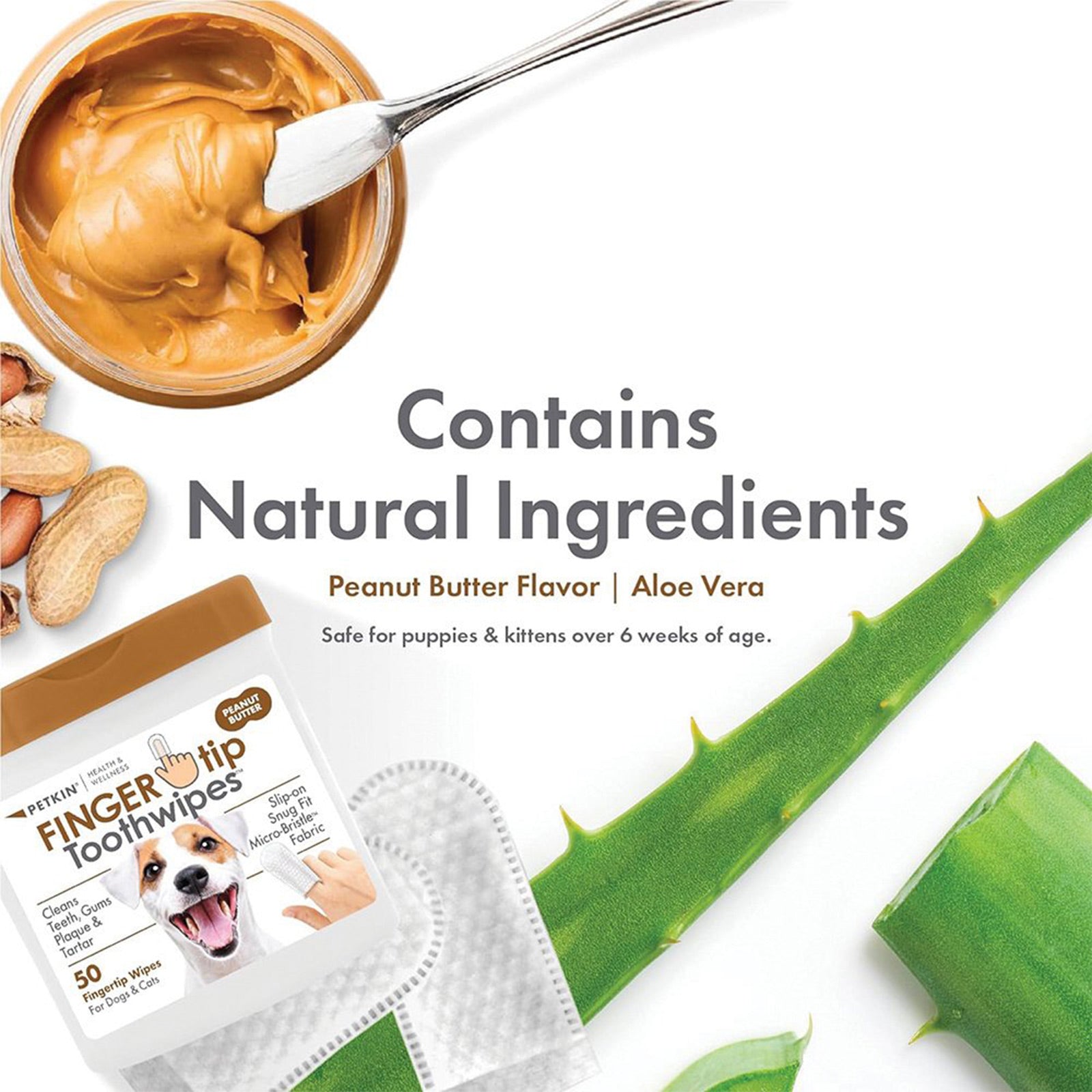 Petkin Finger-Tip Toothwipes Peanut Butter 50pk