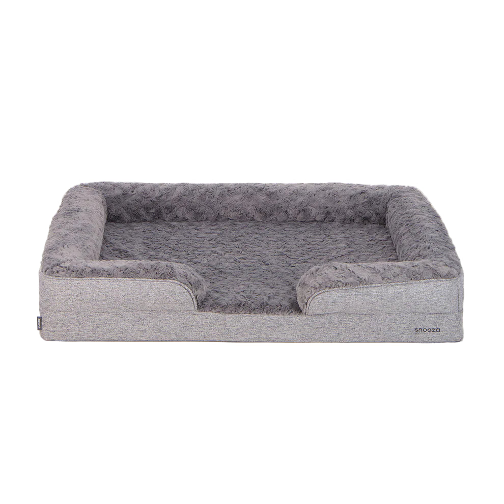 The generously filled mattress provides exceptional cushioning, supporting joints and muscles for deep, restorative sleep. Finished in an elegant silver-grey tone, this bed blends effortlessly into modern interiors while still providing standout comfort for your pet.